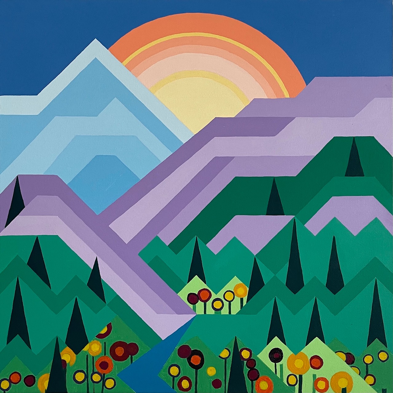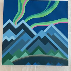 Textile art and prints that draw on the “mountain heart” motif—pieces where travel, landscape, and memory intersect.